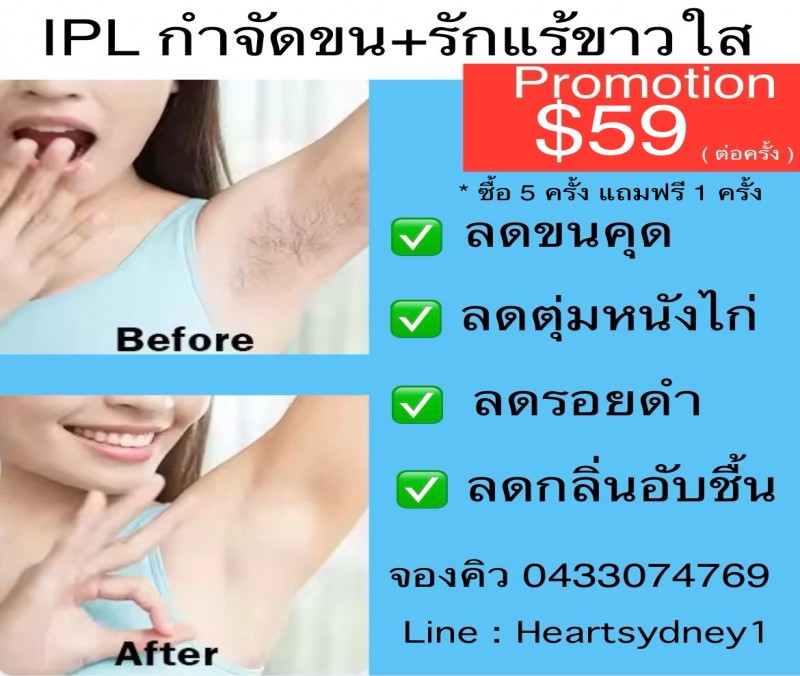 IPL กำจัดขนรักแร้ +รักแร้ขาวใส $59 จองคิว0433074769 , Line : Heartsydney1